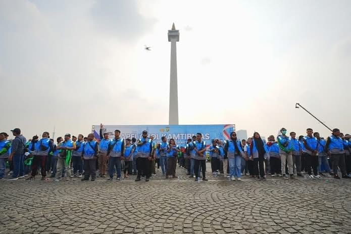 Dalam apel tersebut, para driver ojol juga membacakan deklarasi bersama untuk berkomitmen menjaga keamanan Jakarta.